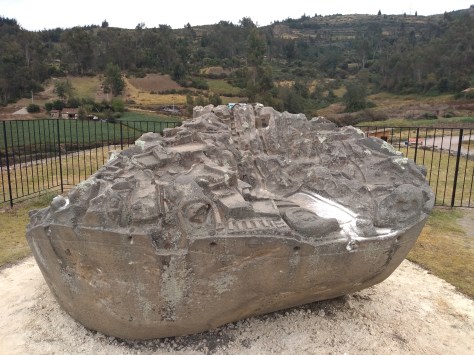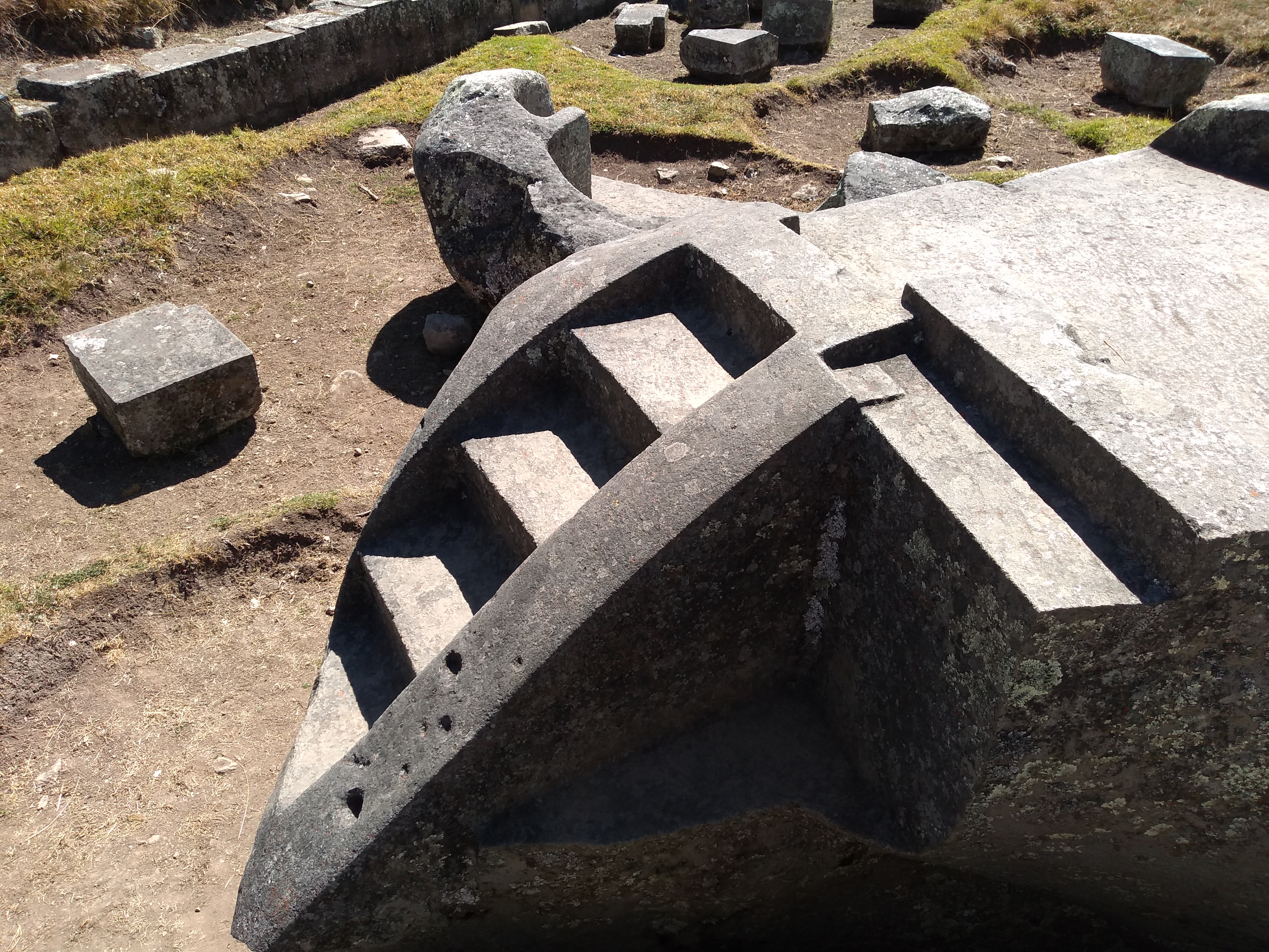 Continuez de descendre pour arriver sur un secteur présentant plusieurs roches sacrées. La zone était entourée d’un mur partiellement détruit (qui rappelle le grand mur entourent les rochers de Qenqo).