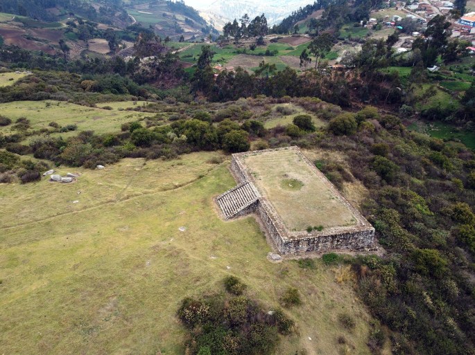 Située sur la partie basse du site, l’ushnu restauré de 3,10m de hauteur borde une immense place.