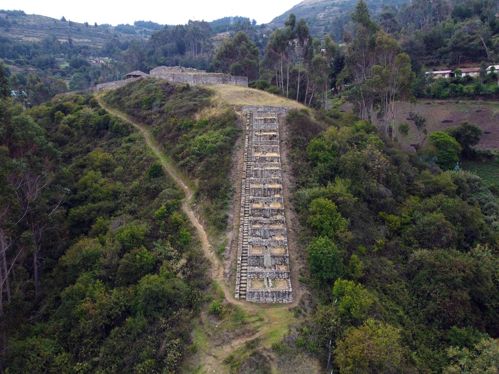 Retournez près de l’entrée du site et longer la plateforme de la pierre de Saywite pour arriver au secteur des terrasses. Cette belle série de fontaines et terrasses cérémonielles servait probablement pour des rituels : les fontaines construites sur la représentation artificielle d’une montagne irriguant symboliquement les petites terrasses (représentant les terrasses de cultures incas).
