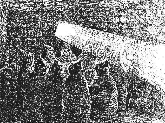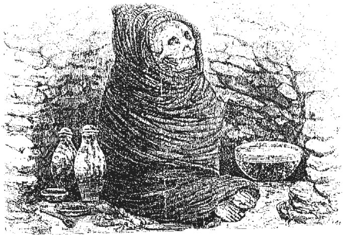 Selon les descriptions de l’explorateur français Paul Marcoy qui a pu documenter des tombes collaguas intactes au 19 eme siècle, les morts étaient enterrés dans des petites maisons souvent construites dans des failles ou abri rocheux naturels. Les tombes pouvaient contenir une douzaine d’individus empaquetés dans leurs vêtements ou dans un paquet en fibres végétales couvrant tout le corps et ne laissant visible que le visage. Les momies étaient disposées en cercle, les pieds se touchant à la manière d’une ronde et chaque mort disposait de ses offrandes de nourriture dans des céramiques.