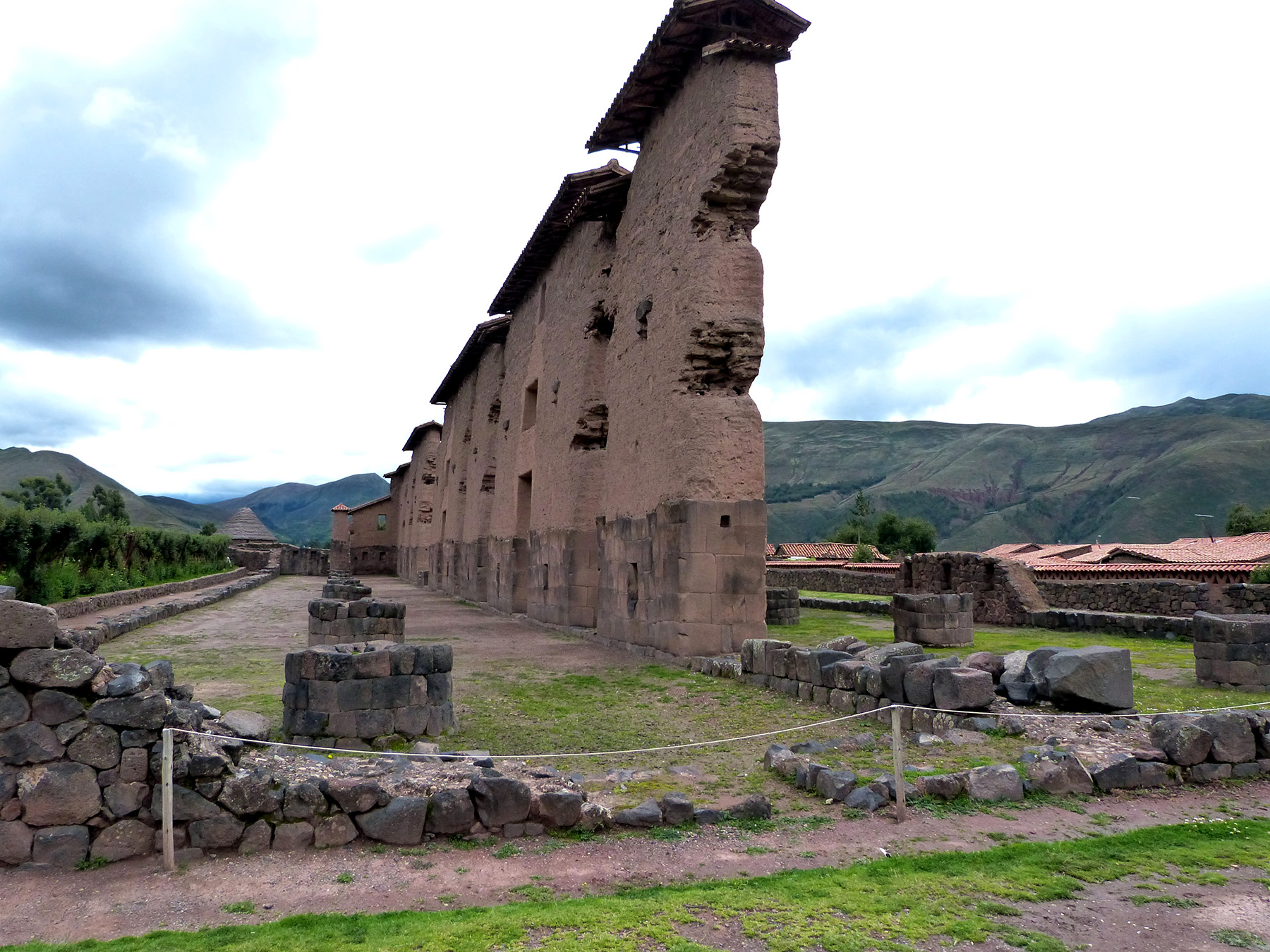 Le bâtiment le plus emblématique du site est une immense Callanca (voir le lexique) dont il ne reste plus que le mur central et quelques structures comme les murs extérieurs et les colonnes qui soutenait la toiture. Selon les chroniques, on rendait ici un culte au dieu Wiracocha (dieu créateur du monde). Les dimensions de l’édifices sont extraordinaires : 92m de long par 25m de large. Le mur central en pierres et adobe qui soutenait la toiture en chaume mesure 12m de hauteur, le toit que vous voyez est actuel et sert à protéger le mur en adobe de la pluie.
