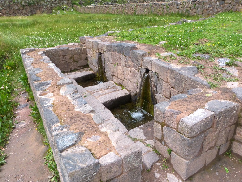 Après l’ushnu, vous arriverez aux fontaines cérémonielles. ces 5 fontaines proviennent d’une source, l’eau est ensuite évacuée vers le lac artificiel via un canal de drainage. L’eau passe ensuite sous la place et ressort vers les terrasses de culture (via une fontaine que vous aurez surement remarqué en arrivant à Raqchi). Les fontaines sont entourée de murs qui indiquent probablement un rituel privé. La plupart des historiens et archéologues pensent que ces fontaines (omniprésentes sur les sites sacrés incas) servaient à se purifier avant d’accéder aux principaux temples.