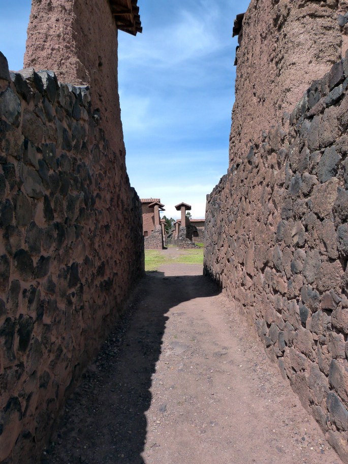 Au Sud du temple se trouve la zone des colcas, 156 greniers circulaires de 8 mètres de diamètre destinés à stocker la nourriture. A l’heure ou j’écris cet article le secteur est fouillé et vous ne pourrez pas accéder à l’intérieur des colcas. Les greniers possèdent des fenêtres destinées à la ventilation et leur toit était en bois et en chaume, certains ont été reconstitués. La nourriture était stockée dans des céramiques ou des paniers en fibres végétales. Notez que la localisation de Raqchi est stratégique pour stocker dans la nourriture, la vallée sud de Cusco étant une énorme vallée agricole, de plus le site est à mi chemin entre Cusco et le lac Titicaca et donne aussi sur des chemins préhispaniques qui menaient à la côte.