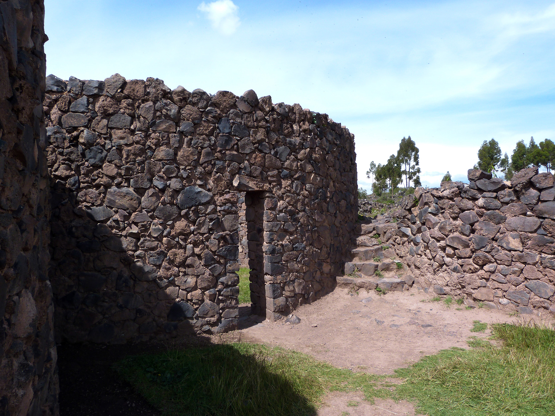 Les colonnes (assez rares dans les constructions incas et prehispaniques en général) servaient à soutenir un toit à double pente. Si les pierres utilisées sont des roches volcaniques assemblées de manière basique, on remarquera que les portes, les colones et le mur central présentent la finition typique des bâtiments cérémoniels incas : des pierres parfaitement assemblées et polies.