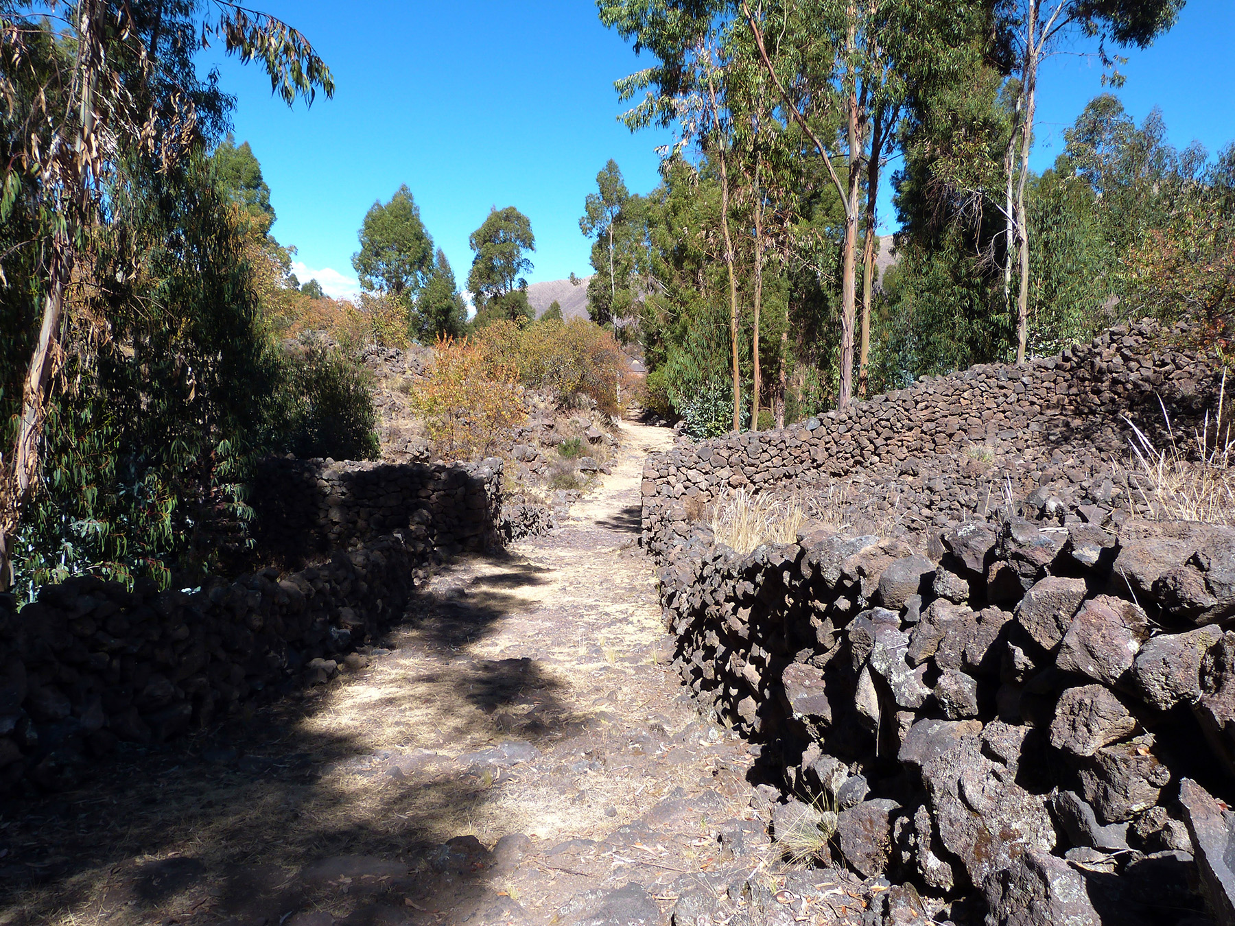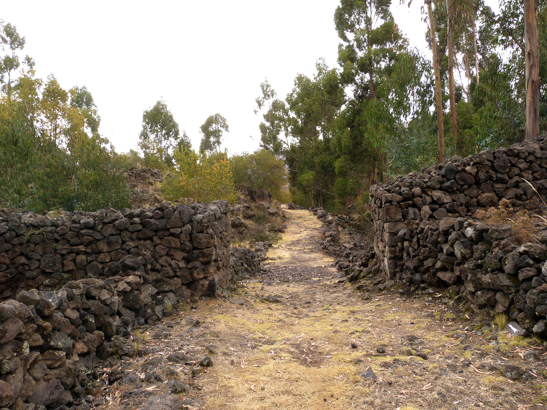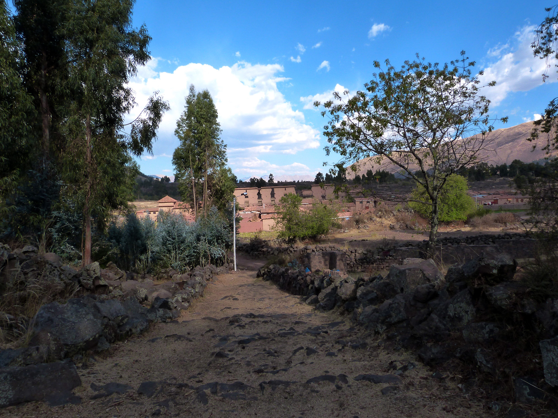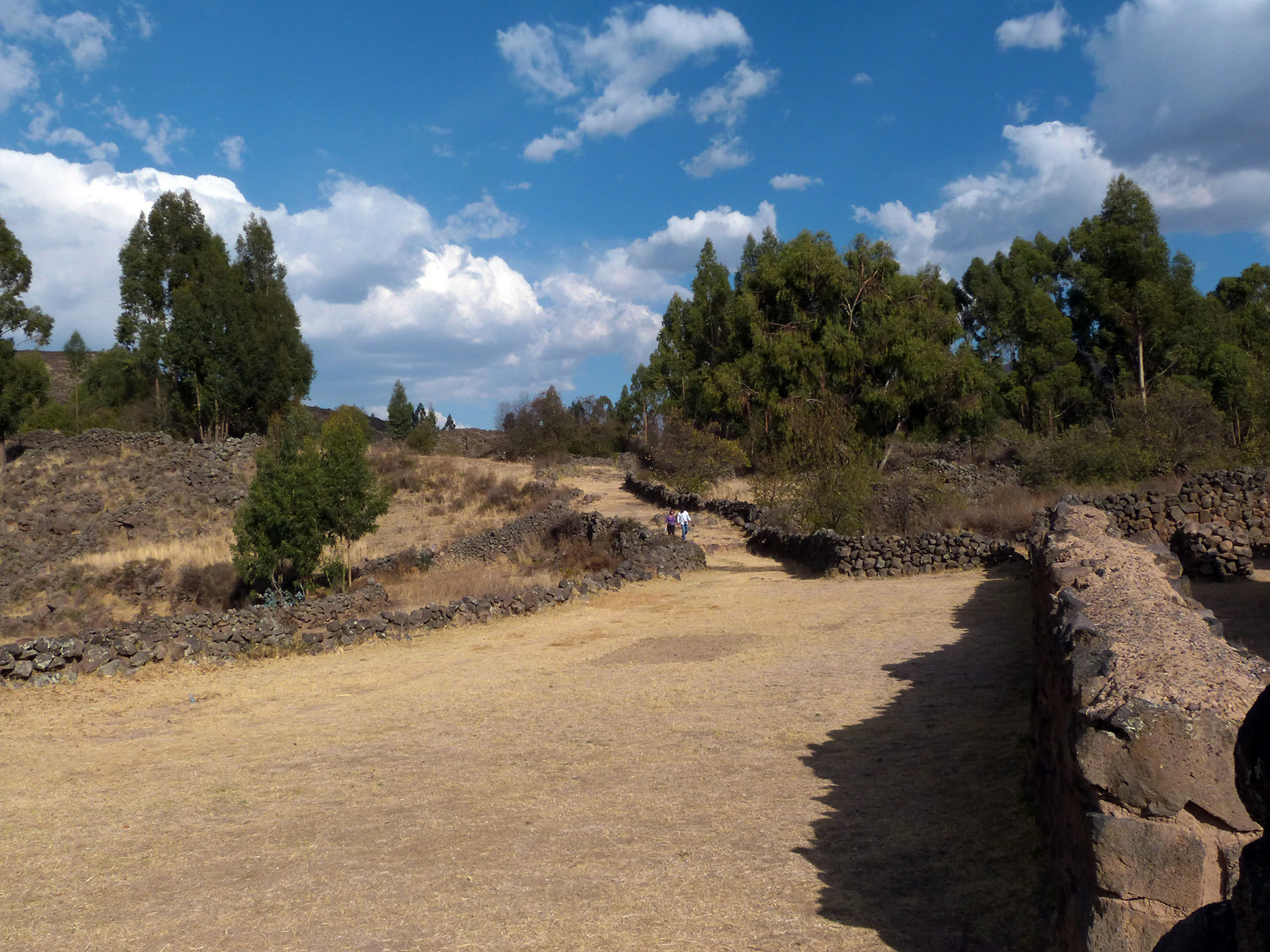 Au Nord Ouest de la place, prendre la route qui se rend vers le village pour trouver le chemin inca. Il part en direction de Cusco et traverse la forêt et la muraille d’enceinte du site avant d’atteindre un immense tambo. Raqchi se trouvait en plein sur le Qhapac ñan connectant Cusco au lac Titicaca puis au Sud du Tawantunsuyo.