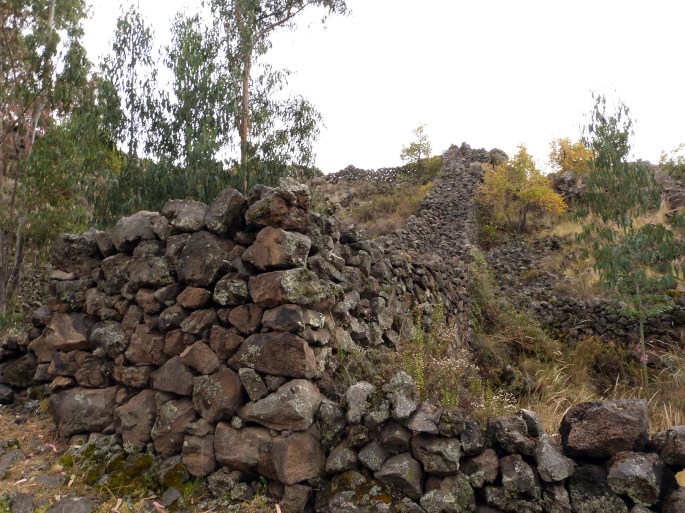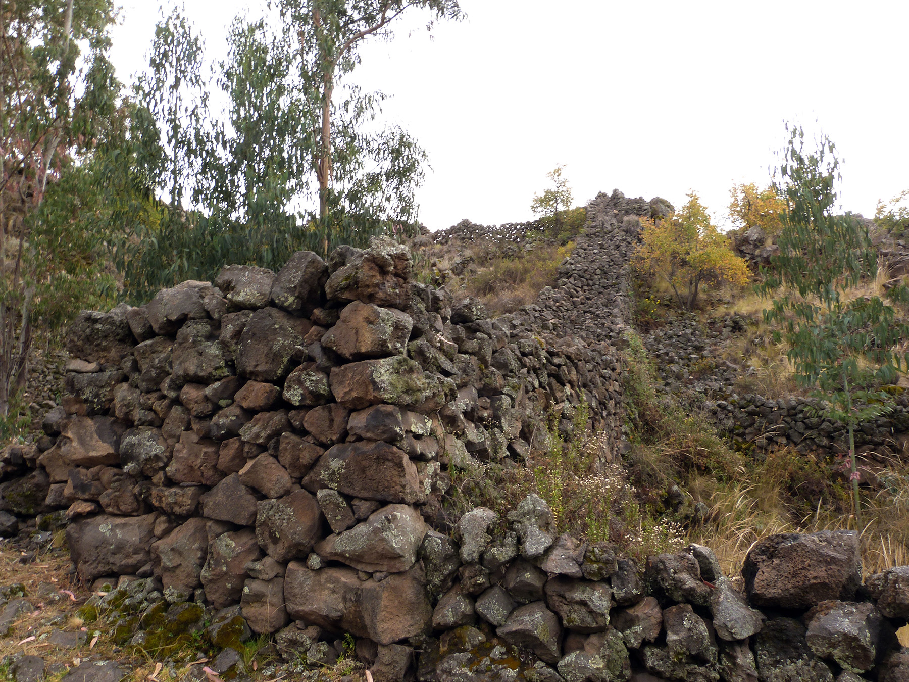 Le secteur cérémoniel de Raqchi est entouré d’un immense mur de 5 Km, vous pouvez l’observer sur la colline qui borde le site. Le mur mesure 3m de hauteur par 2,5m de largeur. En vous rendant au Tambo par le chemin inca vous traverserez le mur d’enceinte.
