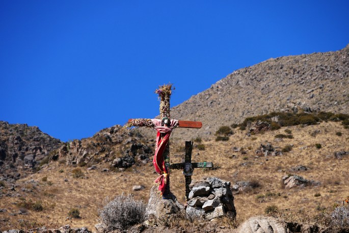 A gauche des grottes se trouve une tombe en hauteur, elle est probablement d’époque Collagua et a été pillée. Lisez l’article sur la momie de Juanito pour plus d’information sur ces tombes