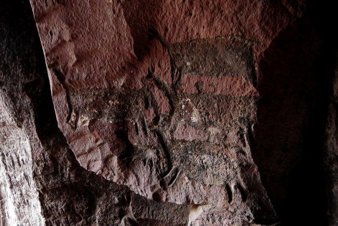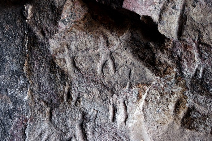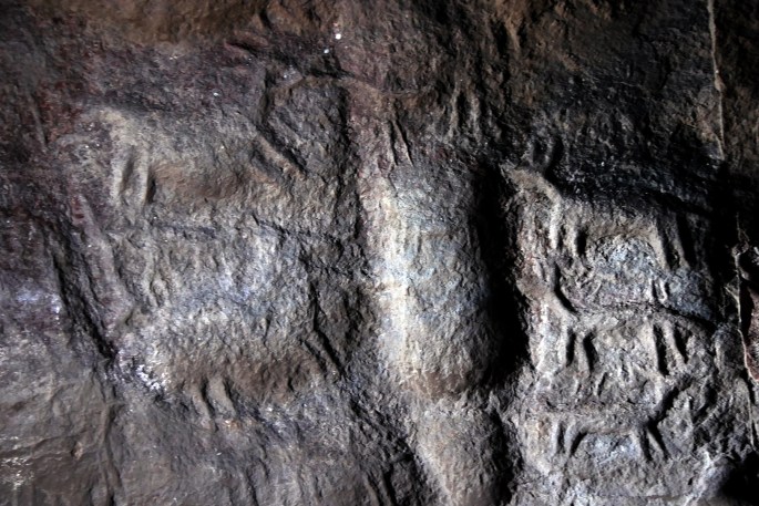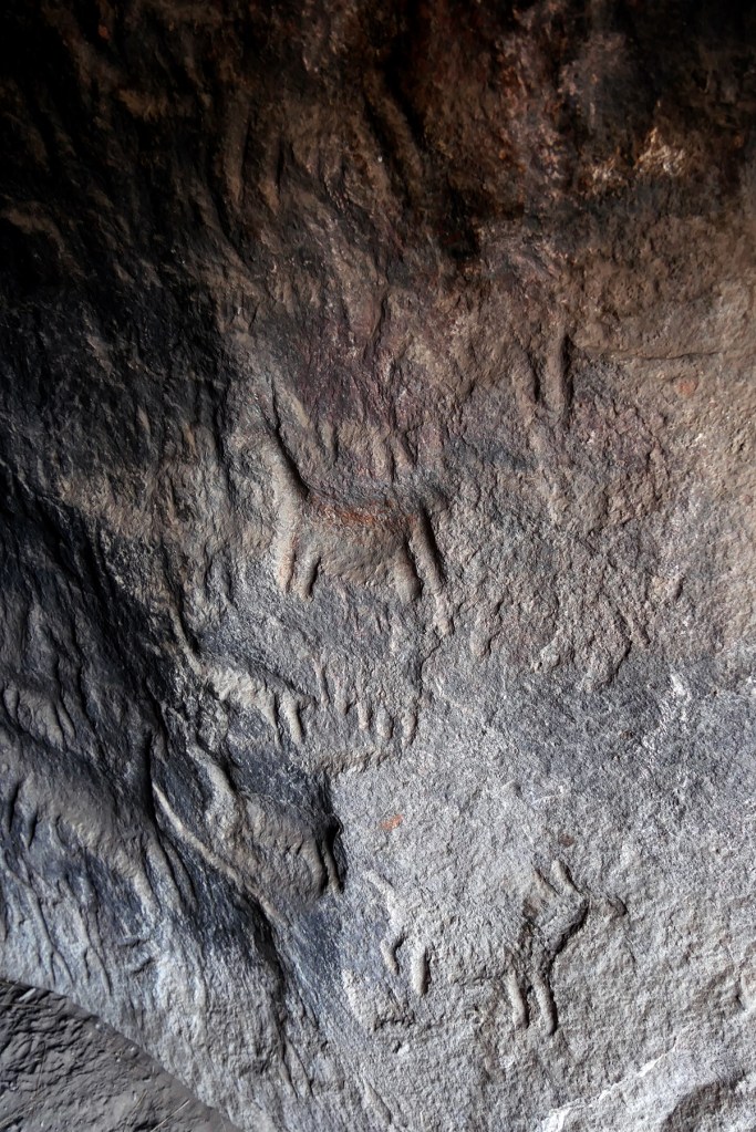 La suie accumulé sur certain murs est due aux feux des bergers qui ont utilisé la grotte comme abri.