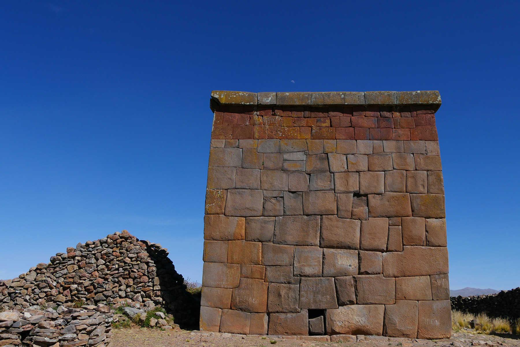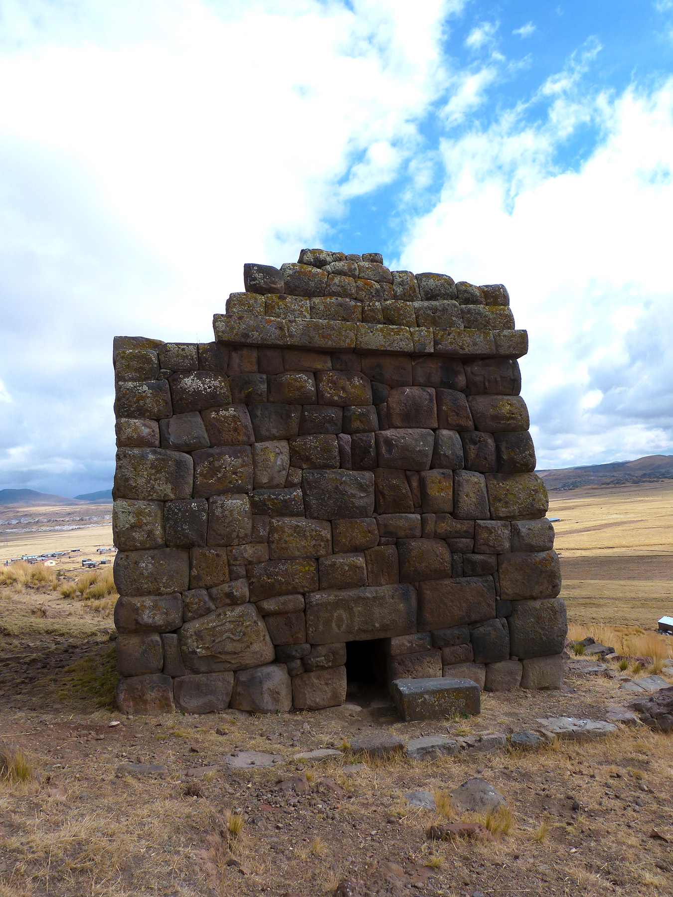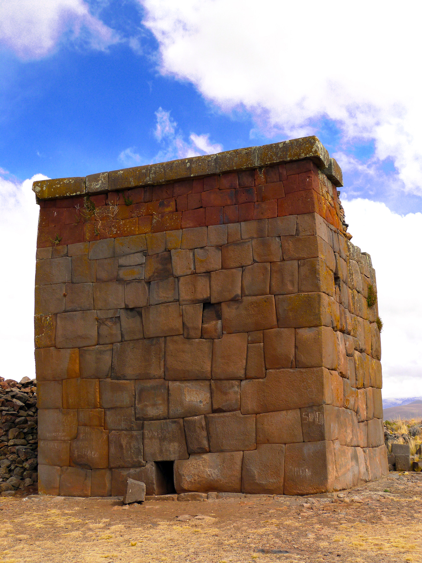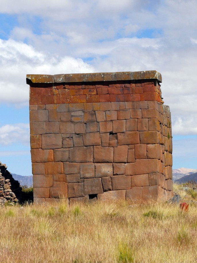 L’immense chullpa rectangulaire est l’une des plus imposantes de l’altiplano. En plus de sa fonction funéraire, les archéologues pensent qu’elle aurait pu fonctionner comme un ushnu : une plateforme cérémonielle inca. La façade est construite en andésite sauf la partie supérieure de la corniche faite dans une roche volcanique rouge. Au-delà de l’intérêt esthétique, cette pierre poreuse aurait également pour fonction d’absorber l’eau de pluie.