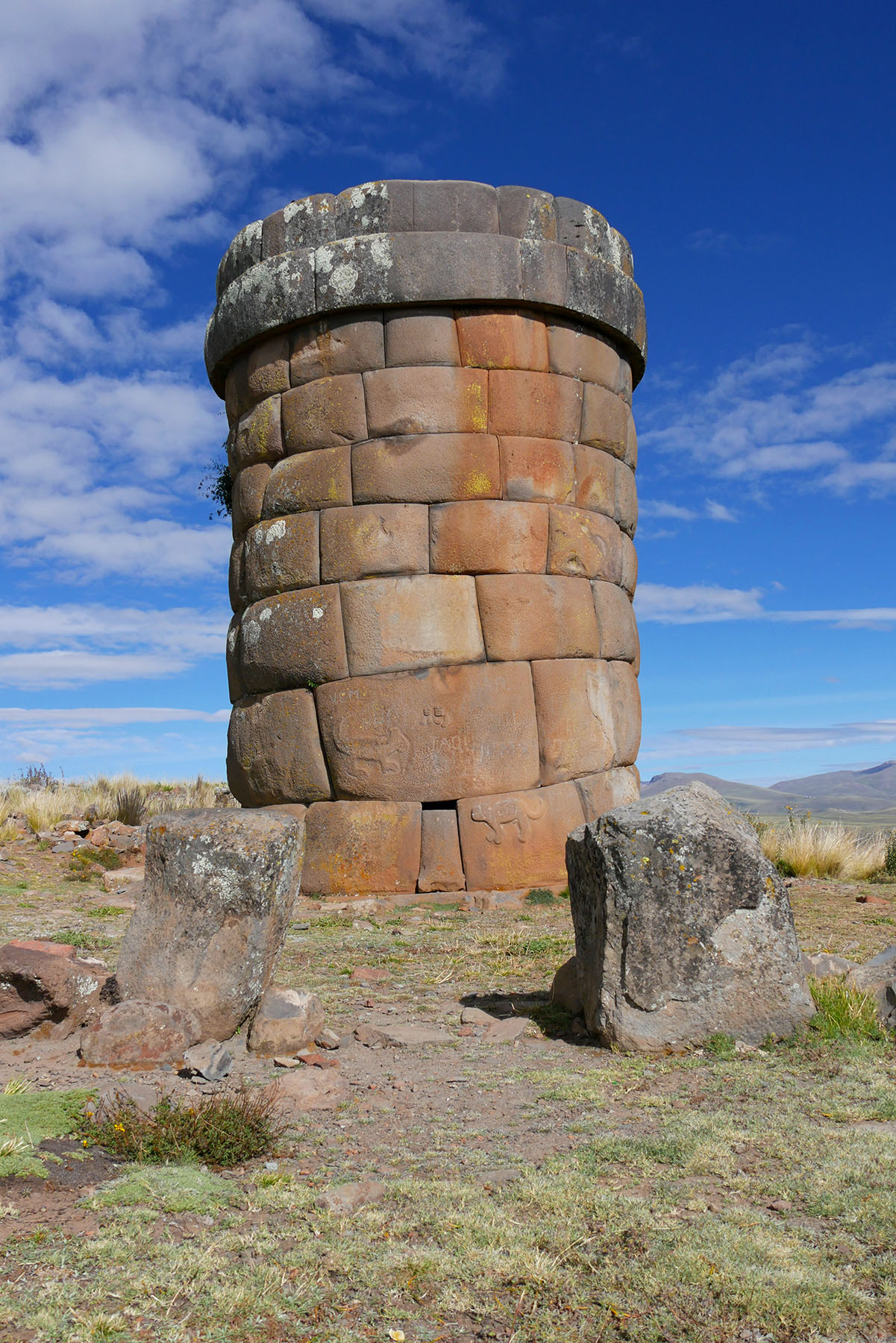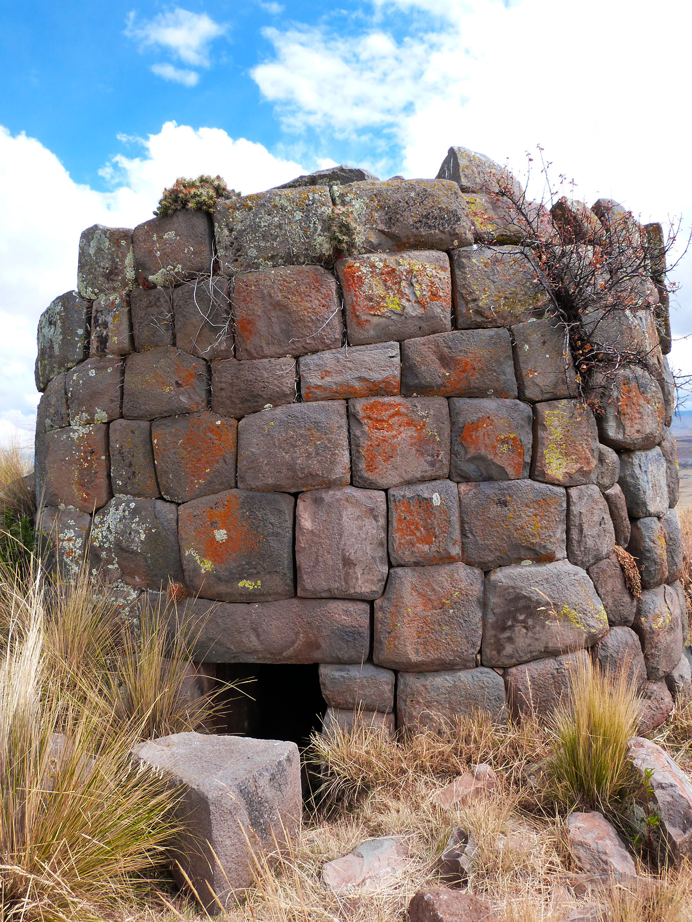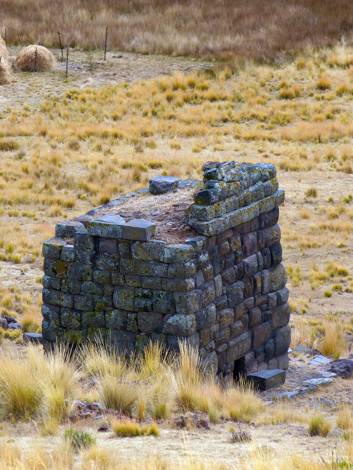 L’immense chullpa rectangulaire est l’une des plus imposantes de l’altiplano. En plus de sa fonction funéraire, les archéologues pensent qu’elle aurait pu fonctionner comme un ushnu : une plateforme cérémonielle inca. La façade est construite en andésite sauf la partie supérieure de la corniche faite dans une roche volcanique rouge. Au-delà de l’intérêt esthétique, cette pierre poreuse aurait également pour fonction d’absorber l’eau de pluie.