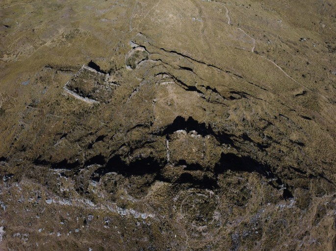 De par leur dimension, ces tranchées sont visibles de très loin (on peut ainsi les observer depuis la place de Pomabamba à 8km en contrebas dans la vallée !). Elles ont probablement été creusées en utilisant des failles, barres rocheuses et reliefs dues à l’érosion naturelle. A certains endroits, le fossé est renforcé par un mur s’élevant au-dessus de sa partie intérieure pour former une sorte de rempart.