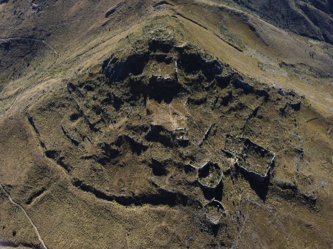Yayno occupe le sommet de la montagne et possède un aspect défensif avec sa position perché au sommet d’une crête, ses tranchées, ses murs haut, et sa forme compacte.
