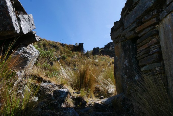 L’entrée originale de Yayno se trouvait probablement entre les complexes c51 et c 41 où un sentier mène à un petit plateau où converge différents sentiers probablement d’origine Recuay. L’escalier traverse 3 portes avant d’arriver sur la place de Yayno. Le site étant totalement abandonné, il est difficile de distinguer cet escalier aujourd’hui au milieu de l’ichu et des arbustes qui ont envahi les ruines.
