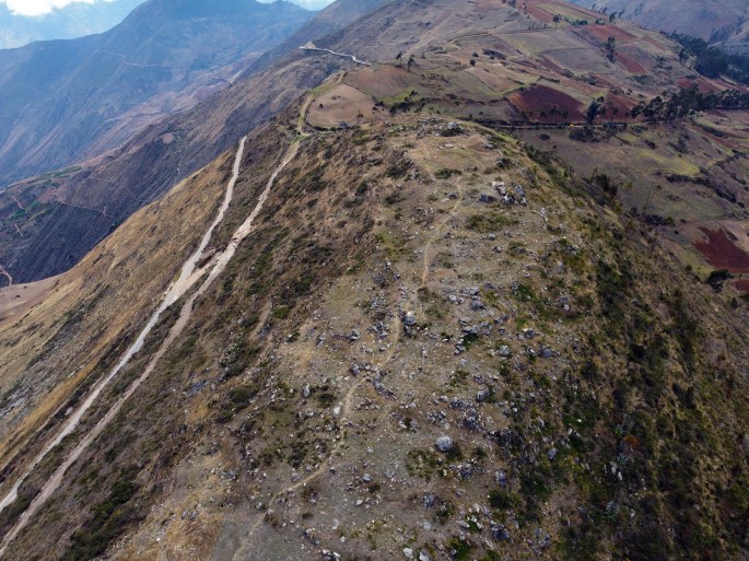 La montagne est ornée de 10 murs de contention sur son flanc Ouest, adossé à des formations rocheuses. Les terrasses ont été construites en pierre locale basaltique et de la terre fertile a probablement été importée pour la dernière couche. Il est probable que ces terrasses aient servi à la culture de pomme de terre ou d’oca. Le flanc Sud abrite des cavités dans lesquelles ont été retrouvés des enterrements. Près du sommet se trouve une file de bâtiments qui servaient probablement de colcas destinées à stocker la production.