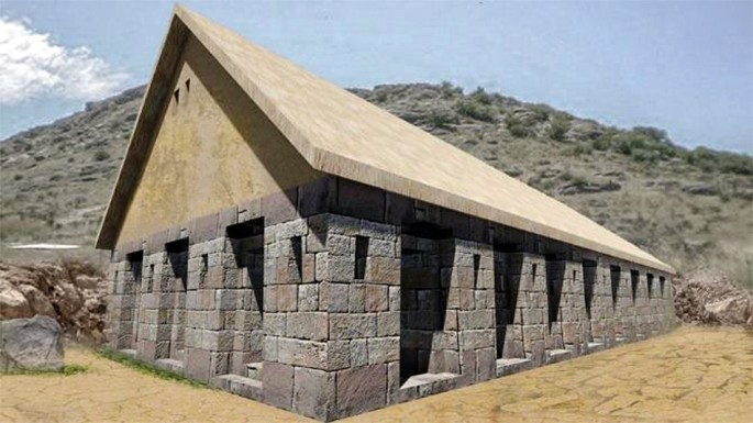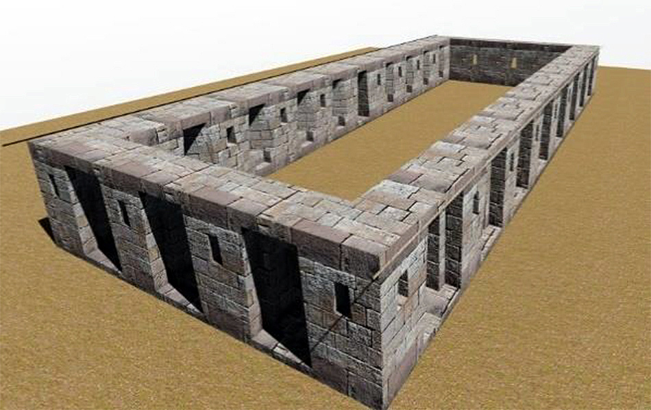 Le bâtiment de Huaytara s’élève sur une plateforme artificielle composée d’un immense mur de soutènement. Il présente une forme trapézoïdale à la manière d’une immense callanca inca et mesure 74x53m (et 43m de large pour le mur Est).