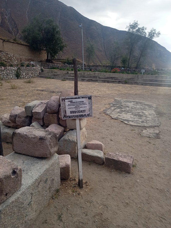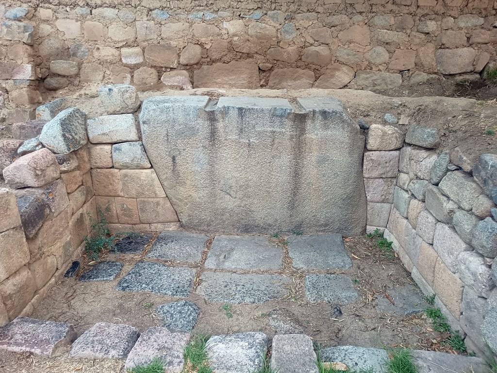Sur la place se trouvent les restes d’une immense fontaine cérémonielle appelée « le bain de l’inca ». Formée d’un énorme bloc de granite taillé avec deux jets d’eau, la fontaine est aujourd’hui surmontée du mur d’un bâtiment plus récent.